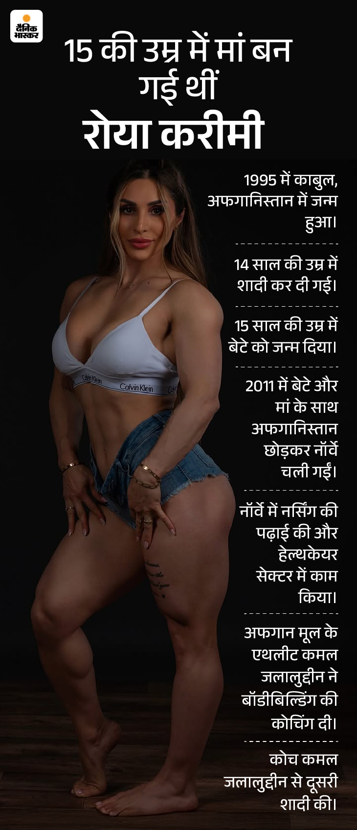 Roya Karimi escaped from Afghanistan to become Europes Top Bodybuilder Check Complete Profile | अफगानिस्तान से भागकर बनीं यूरोप की टॉप बॉडीबिल्डर: 15 की उम्र में मां बनीं, नर्सिंग का करियर छोड़ा; अब नॉर्वे के लिए वर्ल्‍ड चैंपियनशिप खेलेंगी रोया करीमी