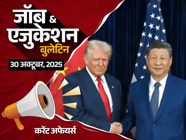 नमस्कार, आज टॉप जॉब्स में बात रेलवे और कोचीन शिपयार्ड में भर्ती शुरू होने की। करेंट अफेयर्स में जानकारी अमेरिकी राष्ट्रपति डोनाल्ड ट्रम्प और चीनी राष्ट्रपति शी जिनपिंग की साउथ कोरिया में हुई बैठक समेत अन्य खबरों की। टॉप स्टोरी में बात CBSE बोर्ड में मोटू-पतलू कॉमिक बुक्स की एंट्री की।