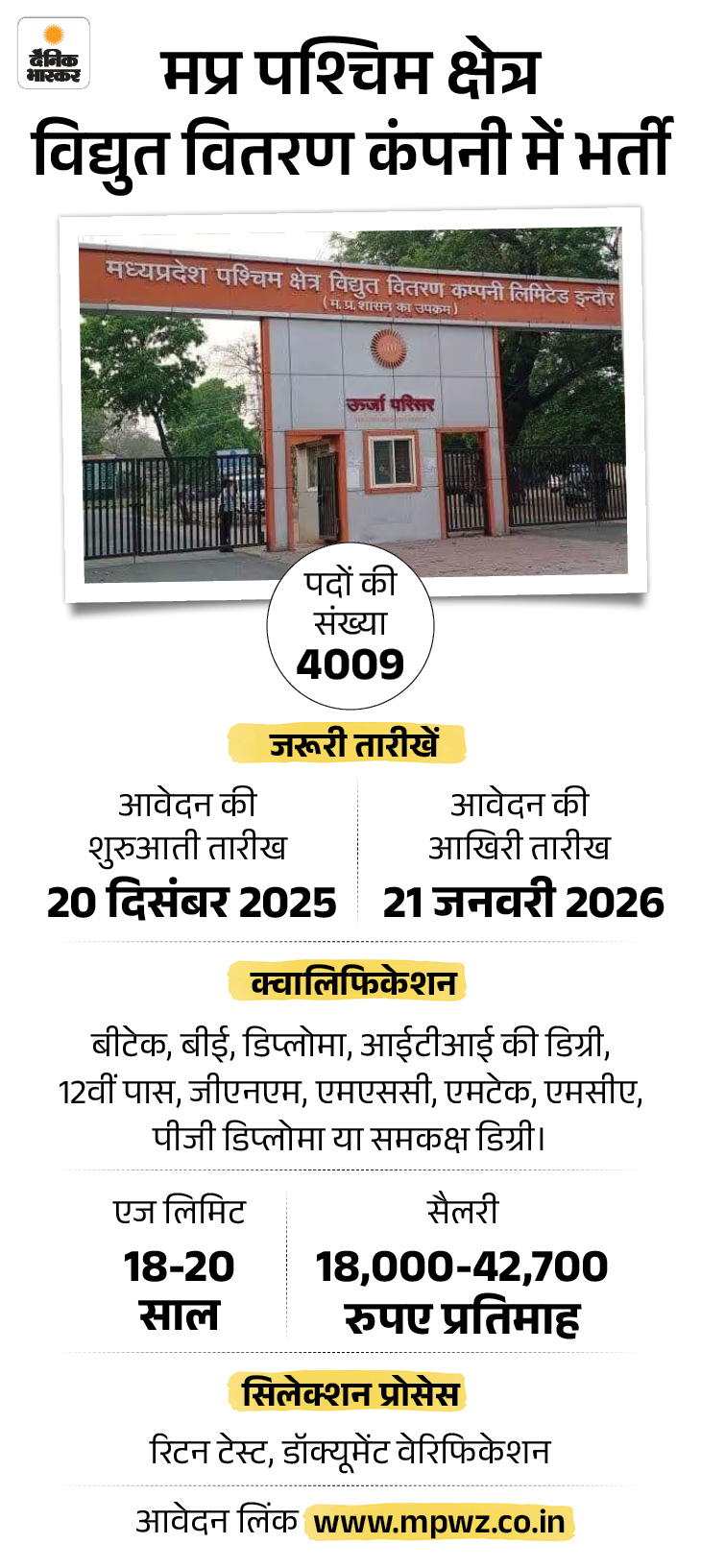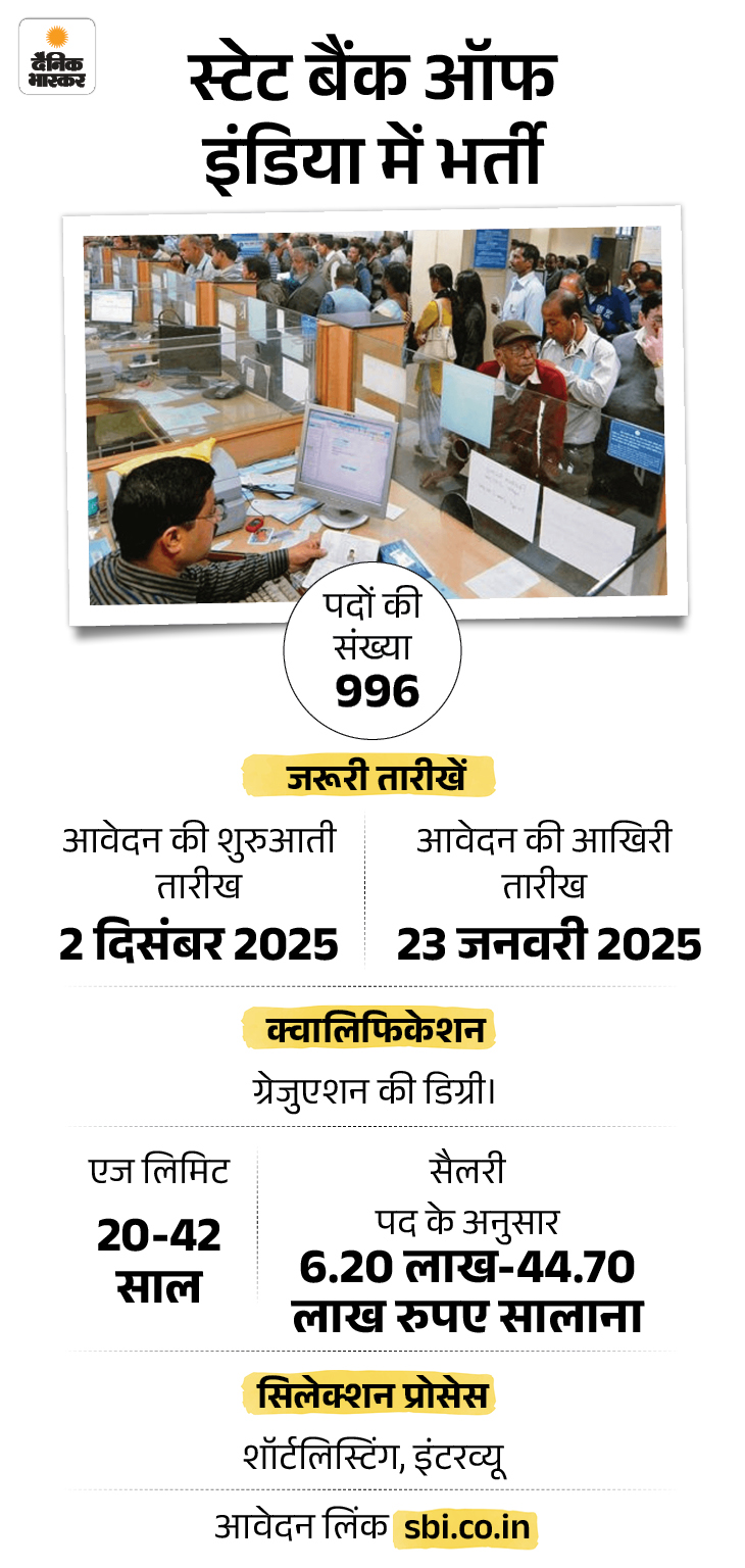 इस हफ्ते देशभर के अलग-अलग विभागों में 50,289 पदों पर भर्तियां निकली हैं। अगर आप भी इन पदों के लिए अप्लाई करना चाहते हैं, तो इन 6 नौकरियों की डिटेल्ड जानकारी 6 ग्राफिक्स के जरिए जानिए :