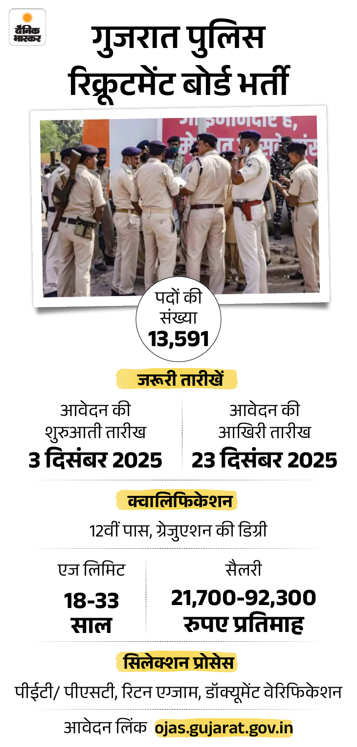 - SSC GD Constable Recruitment For 25,487 Posts; Gujarat Police Has 13,591 Vacancies, With Over A Thousand Jobs Announced This Week.