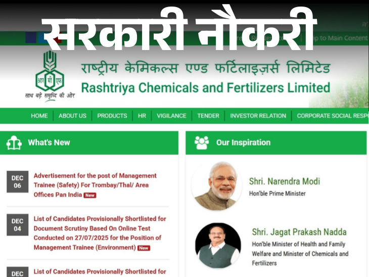 Navratna company RCF Limited is hiring for Management Trainee positions; Graduates can apply, last date is December 20. | सरकारी नौकरी: नवरत्‍न कंपनी RCF लिमिटेड में मैनेजमेंट ट्रेनी की भर्तियां; ग्रेजुएट्स करें अप्‍लाई, लास्‍ट डेट 20 दिसंबर