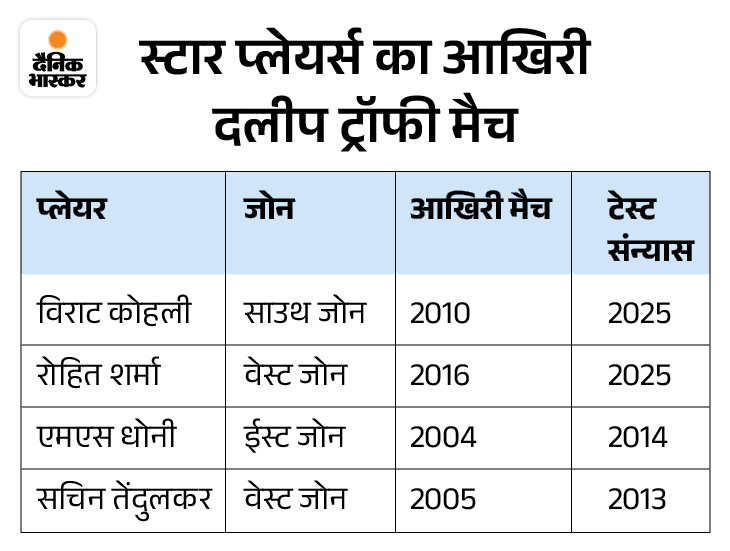 Virat played the last Dalip Trophy match in 2016, Rohit in 2016 This is not the first time that Team India’s star players are skipping domestic tournaments. Rohit Sharma, who retired from Test cricket in May this year, played the last Dalip Trophy match for 9 years, while Virat Kohli 15 years ago. Virat was last captaining the North Zone in 2010, while in 2016, Rohit played under the captaincy of Gautam Gambhir on behalf of India Blue. Former captain MS Dhoni also played very few home matches after becoming the captain of Team India.