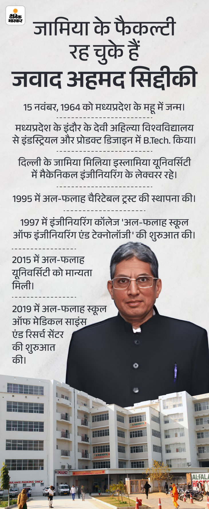 अल-फलाह यूनिवर्सिटी का नाम सामने आने के बाद इसके मालिक जवाद अहमद सिद्दीकी लगातार चर्चा में हैं।