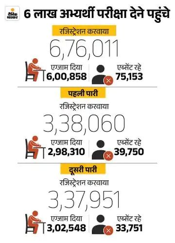 राजस्व बोर्ड के उप निबंधक (भू अभिलेख) रवींद्र कुमार ने बताया- अंतिम दिन रविवार को 1312 के मुकाबले 1116 व पूर्व में अनुपस्थित रहे 59 सहित कुल 1175 अभ्यर्थियों के दस्तावेजों का सत्यापन हुआ जबकि 196 अनुपस्थित रहे ।