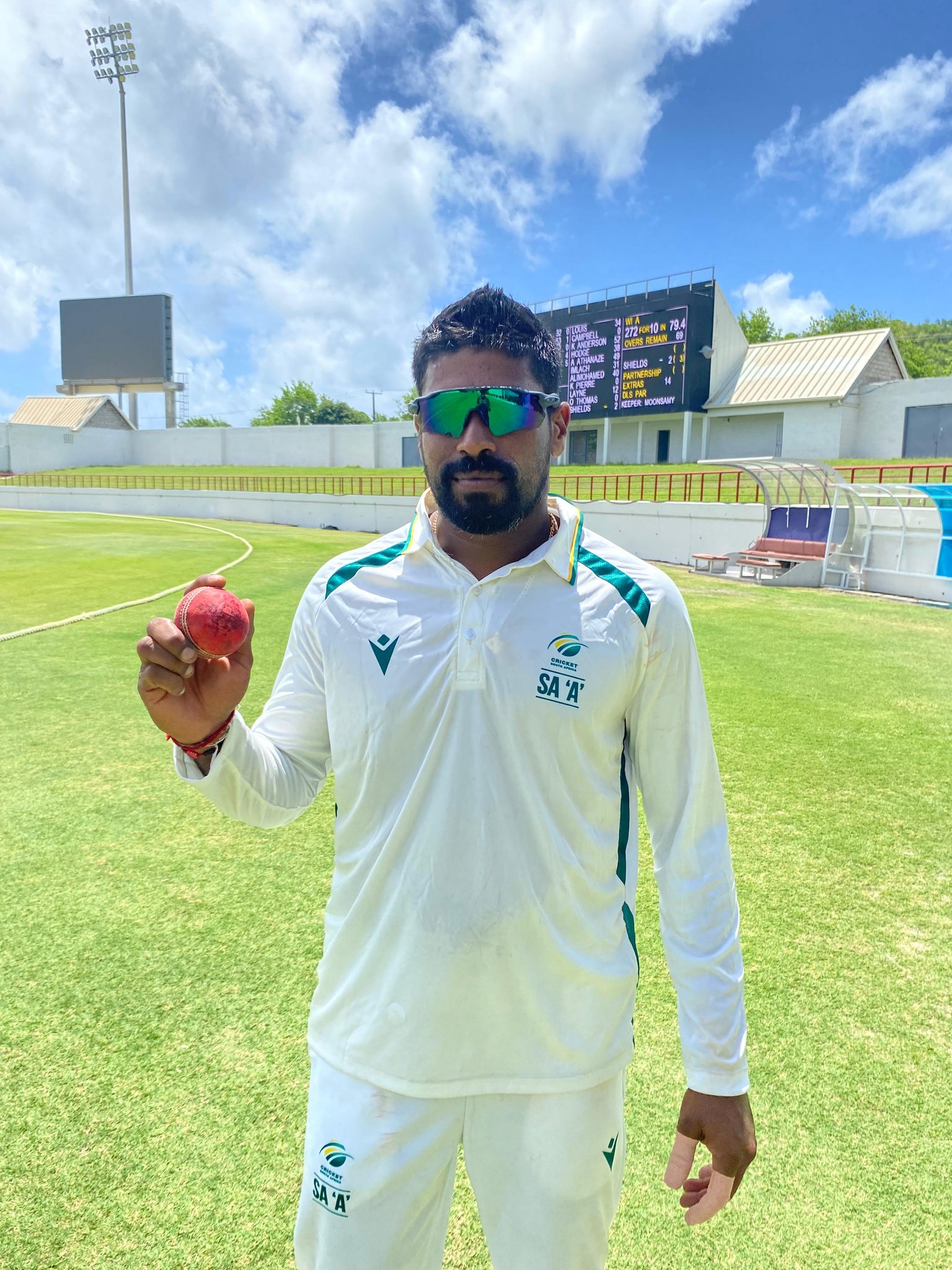 सब्रायन ने 22 ओवर लगातार फेंककर 5 विकेट झटके 32 साल के ऑफ स्पिनर सब्रायन हाल ही में पाकिस्तान टेस्ट सीरीज में खेले थे। लेकिन इंडिया टूर के लिए उन्हें टीम में जगह नहीं मिली। उन्होंने भारतीय इनिंग में लगातार 22 ओवर फेंके। 61 रन दिए और 5 विकेट भी चटकाए। सब्रायन ने आयुष म्हात्रे, देवदत्त पडिक्कल, रजत पाटीदार, तनुष कोटियान और खलील अहमद को पवेलियन भेजा।