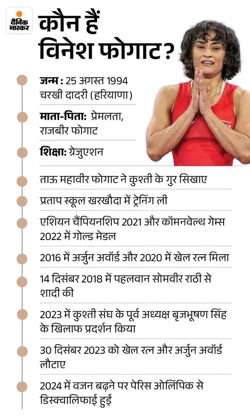 हरियाणवीं रेसलर विनेश फोगाट का साल 2023 में कुश्ती संघ अध्यक्ष से टकराव हुआ। इसके बाद साल 2024 के पेरिस ओलिंपिक में 100 ग्राम वजन बढ़ने से डिसक्वालिफाई होने पर रेसलिंग छोड़ दी थी। खेल छोड़ने के बाद कांग्रेस पार्टी ज्वाइन की। 2024 में ही चुनाव जीत कर जींद के जुलाना से MLA बनीं। अब वे एक बेटे की मां भी हैं।