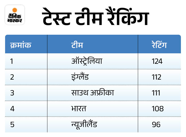 टेस्ट की टीम रैंकिंग में इंग्लैंड नंबर-2 पर आया टेस्ट की टीम रैंकिंग में इंग्लिश टीम नंबर-2 पर आ गई है। बेन स्टोक्स की कप्तानी वाली इंग्लिश टीम ने वर्ल्ड चैंपियन साउथ अफ्रीका को पीछे छोड़ा। इस लिस्ट में ऑस्ट्रेलियाई टीम नंबर-1 पर है। कंगारुओं के 124 रेटिंग पॉइंट्स हैं। वहीं, इंग्लैंड 112 और साउथ अफ्रीका 111 अंक के साथ दूसरे और तीसरे स्थान है। भारत 108 अंक के साथ चौथे नंबर पर हैं।
