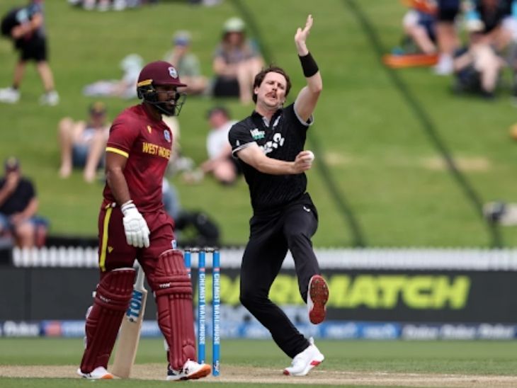 west-indies-vs-new-zealand-third-odi Matt Henry Hamilton, NZ vs WI, | वेस्टइंडीज आखिरी वनडे में 161 पर ऑलआउट: न्यूजीलैंड के सामने 162 का लक्ष्य; मैट हेनरी ने 4 विकेट लिए