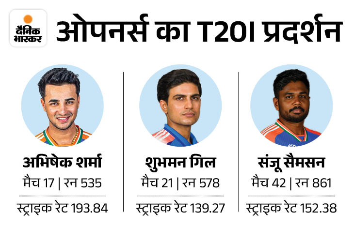When Gill was not there, both Samson and Abhishek made the opening position their own. Where Abhishek scored 2 centuries, Samson scored 3 centuries. If Gill is a vice -captain, then his playing is also confirmed, he will open, then one of Samson or Abhishek will be out. If the left-right combination is followed, then only Abhishek and Shubman will start. In that condition, Samson can be sent to number-3.