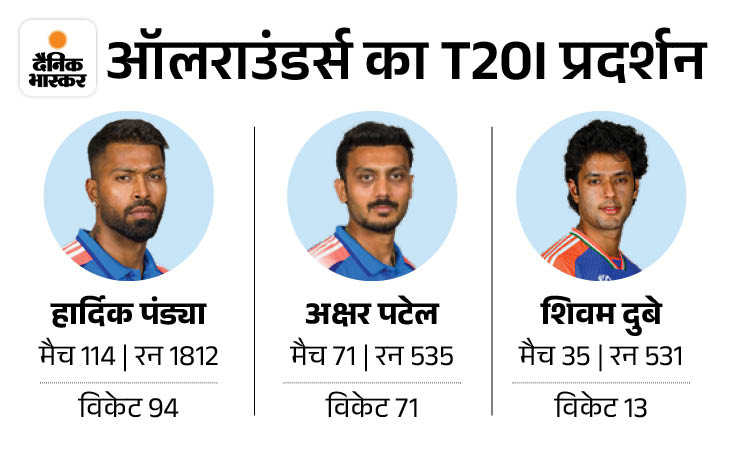 Will all -rounder play 2 or 3? A Philosophy of coach Gautam Gambhir is seen in every format, giving all -rounders more and more opportunities. The T20 squad has 3 all-rounders in the form of Hardik Pandya, Akshar Patel and Shivam Dubey. All three can handle positions number 5, 6 and 7.