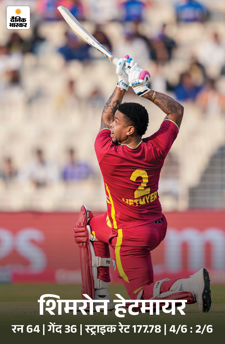 इससे पहले शिमरोन हेटमायर ने 36 बॉल पर 64 रन बनाए। ओपनर ब्रैंडन किंग ने 35 रन का योगदान दिया। रोवमैन पॉवेल और शेरफेन रदरफोर्ड ने 24 रन बनाए। जेसन होल्डर ने 2 विकेट लिए। मैच का स्कोरकार्ड…