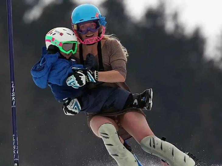2011 में जब सारा ने पहली बार संन्यास लिया था, तब उन्होंने अपनी अंतिम रेस में 4 साल के लासे को गोद में उठाकर स्कीइंग की थी। – फाइल फोटो