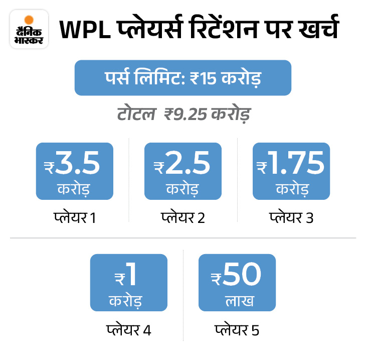 गुरुवार को WPL ने सभी फ्रेंचाइजी को एक ईमेल भेजे। इसमें कहा कि हर टीम ज्यादा से ज्यादा तीन कैप्ड भारतीय, दो विदेशी और दो अनकैप्ड भारतीय खिलाड़ी रिटेन कर सकती है। अगर कोई फ्रेंचाइजी पांच खिलाड़ियों को रिटेन करती है, तो उनमें कम से कम एक अनकैप्ड भारतीय खिलाड़ी होना अनिवार्य है।